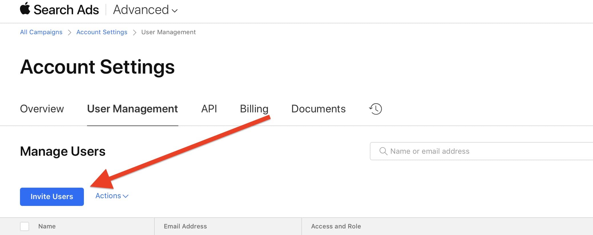 - First, you'll need to create a user in Apple Search Ads using a different Apple Account than your primary Apple Account.